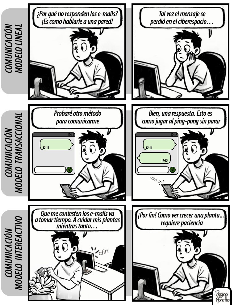 Para ilustrar cómo funcionan estos modelos en la vida real, te dejo esta tira cómica sobre Juan, un emprendedor que intenta encontrar la mejor manera de comunicarse con sus clientes.
